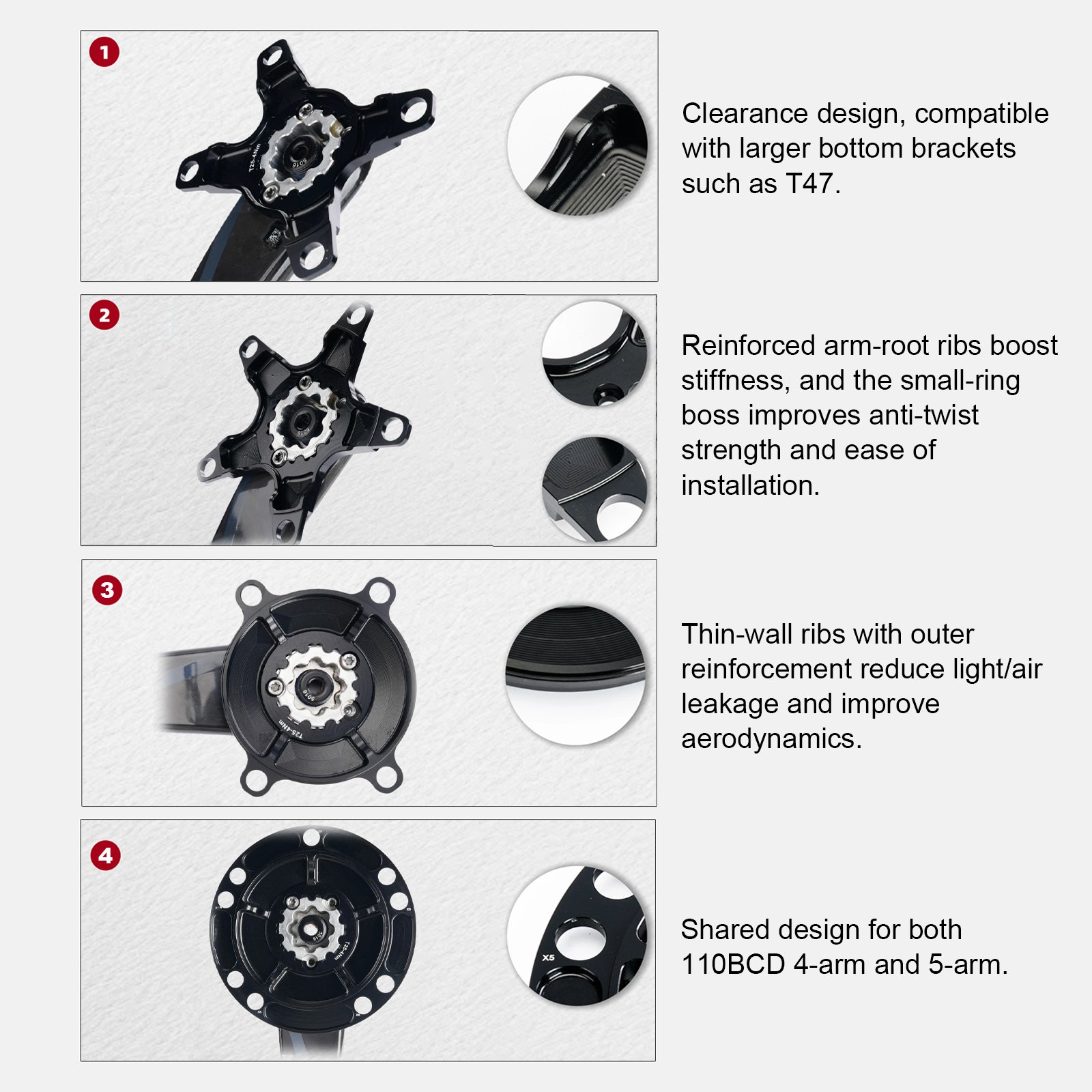 4 arms models works for Dura-Ace R9100, Ultegra R8000, 105 R7000, Tiagra 4700, FC 5800 6800 9000, R7100 R8100 R9200